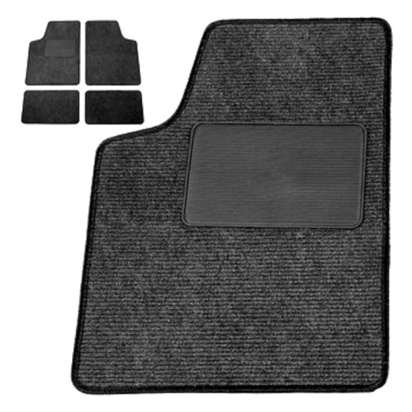 Tapetes de Alcatifa Antracite 4 peças • Dimensões: frente: 69,5 cm x 49,5 cm – atrás: 49,5 cm x 29,5 cm • Gramagem: 400 gr/m² • 100% Polipropileno e base em latex anti-derrapante
